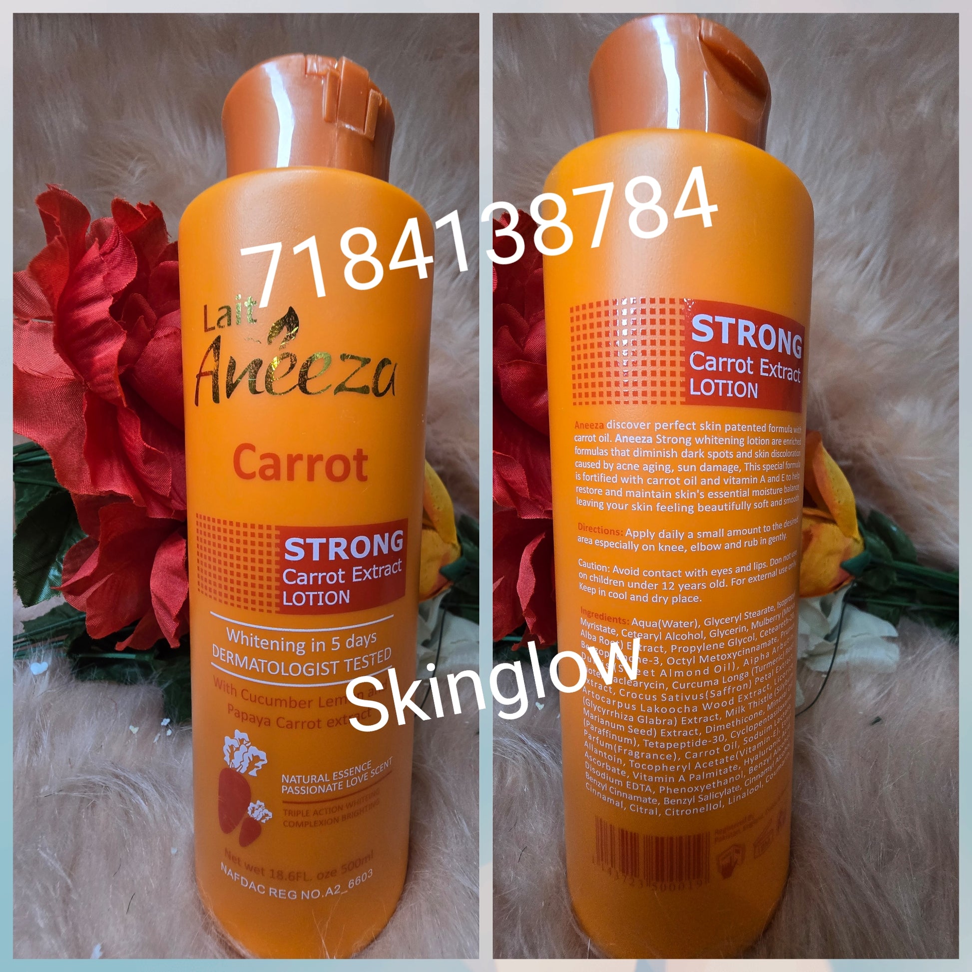 Aneeza strong carrot extract whitening lotion.5days action .dermatologist tested